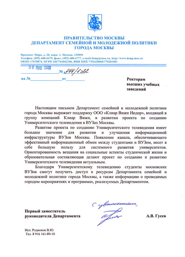 В Clear Vision уверены, что недостаток сегодняшнего Indoor-TV в низком качестве контента всех российских Indoor-TV компаний, поэтому размещение рекламы в СМИ такого формата осуществляется на носителях, имеющих хорошее контентное наполнение. Аудитории не интересно смотреть на экраны, показывающие только рекламу в ВУЗах Москвы. Именно поэтому в Clear Vision организована выпускающая студия, ведется активная журналистская работа. Операторские группы Clear Vision снимают интересные для студентов сюжеты, берут интервью у преподавателей и молодежи, делают новостные выпуски. Такая работа привлекает большое внимание студентов к рекламе в университетах Москвы. То, что темы репортажей Университет-ТВ стали уже предметом скетчей в ВУЗовских КВНах говорит об исключительно большом внимании молодежной аудитории к данному медиа каналу для рекламы в ВУЗах Москвы.